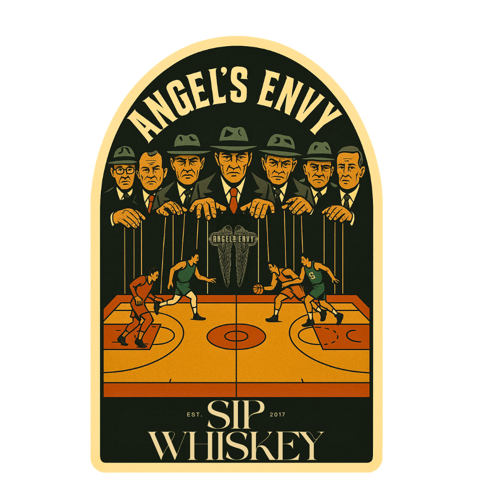 This limited-edition sticker commemorates the recent NBA gambling scandal, "Operation Nothing But Bet", capturing the controversy through bold, vintage-style artwork. The design depicts mob-like figures controlling basketball players with puppet strings, symbolizing the manipulation and corruption that shook the league.